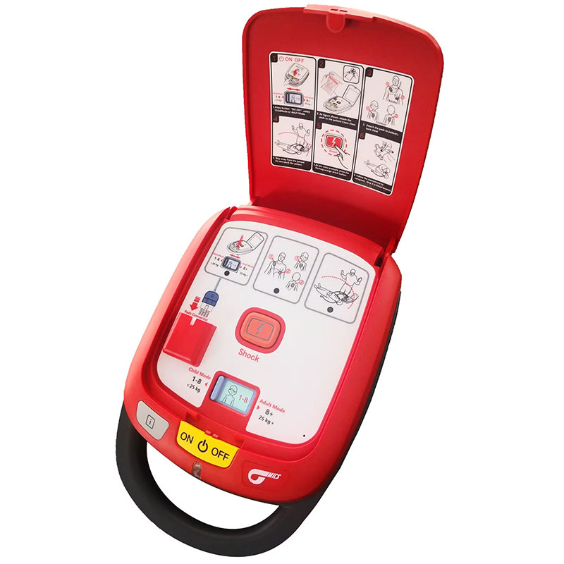 Le Heart Guardian HR-501 est un appareil qui analyse automatiquement le rythme cardiaque des victimes d’un arrêt cardiaque et envoie un choc électrique au cœur pour lui permettre de retrouver son rythme normal.