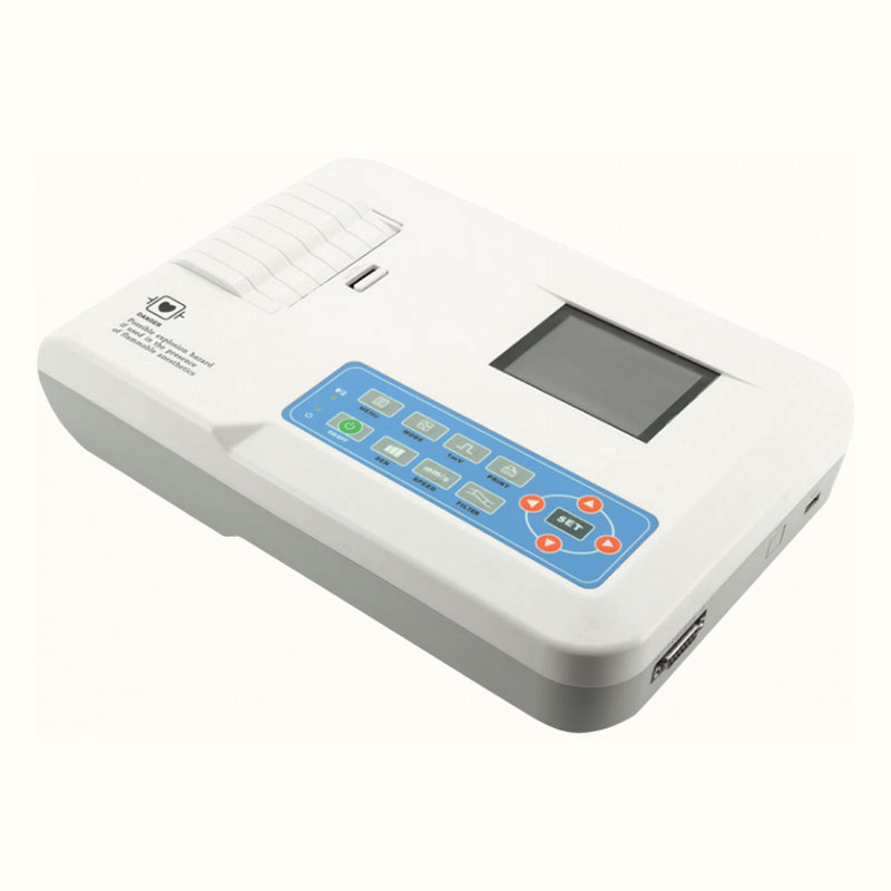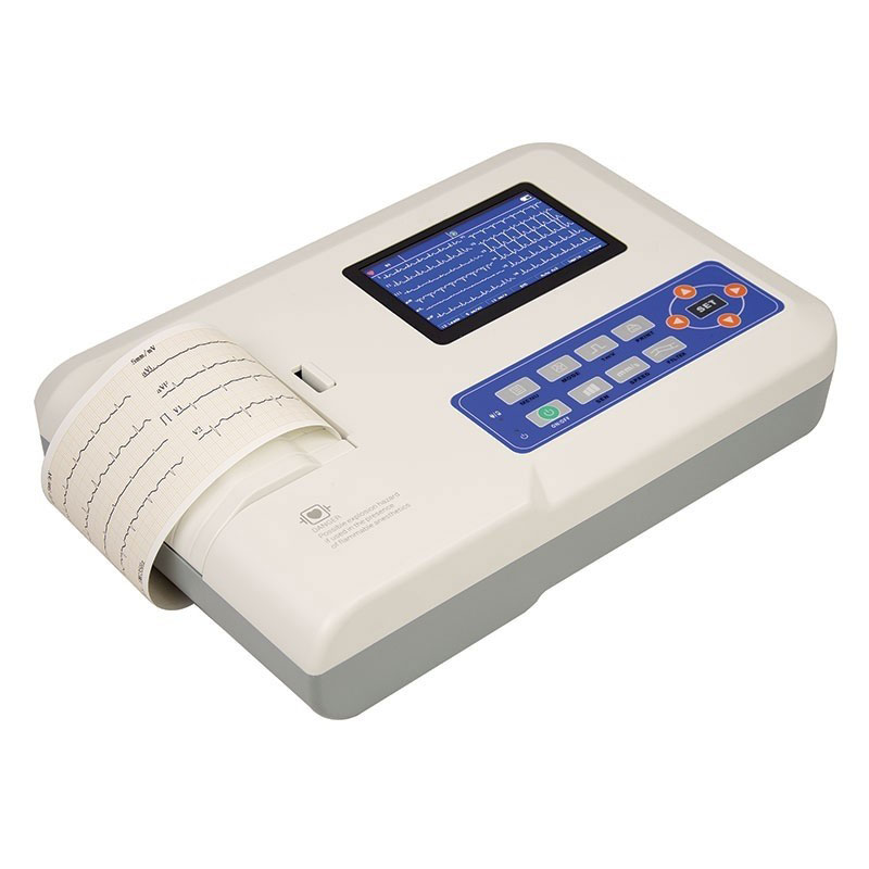 L’ECG CONTEC 03 pistes est un ECG multipiste complet permettant de réaliser des enregistrements manuels et automatiques avec calcul des paramètres, d’imprimer sous différents formats, de visualiser sur un écran LCD couleur de 3,5 pouces, d’identifier et de mémoriser les ECG. Disponibles en anglais et autres langues.